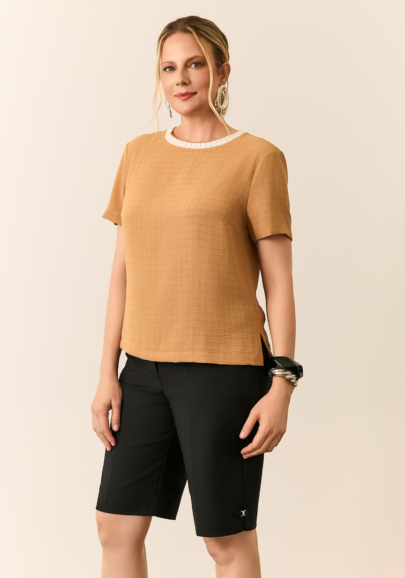 Conforto inigualável: O blend de algodão, poliamida e elastano oferece liberdade de movimento sem perder a elegância.
