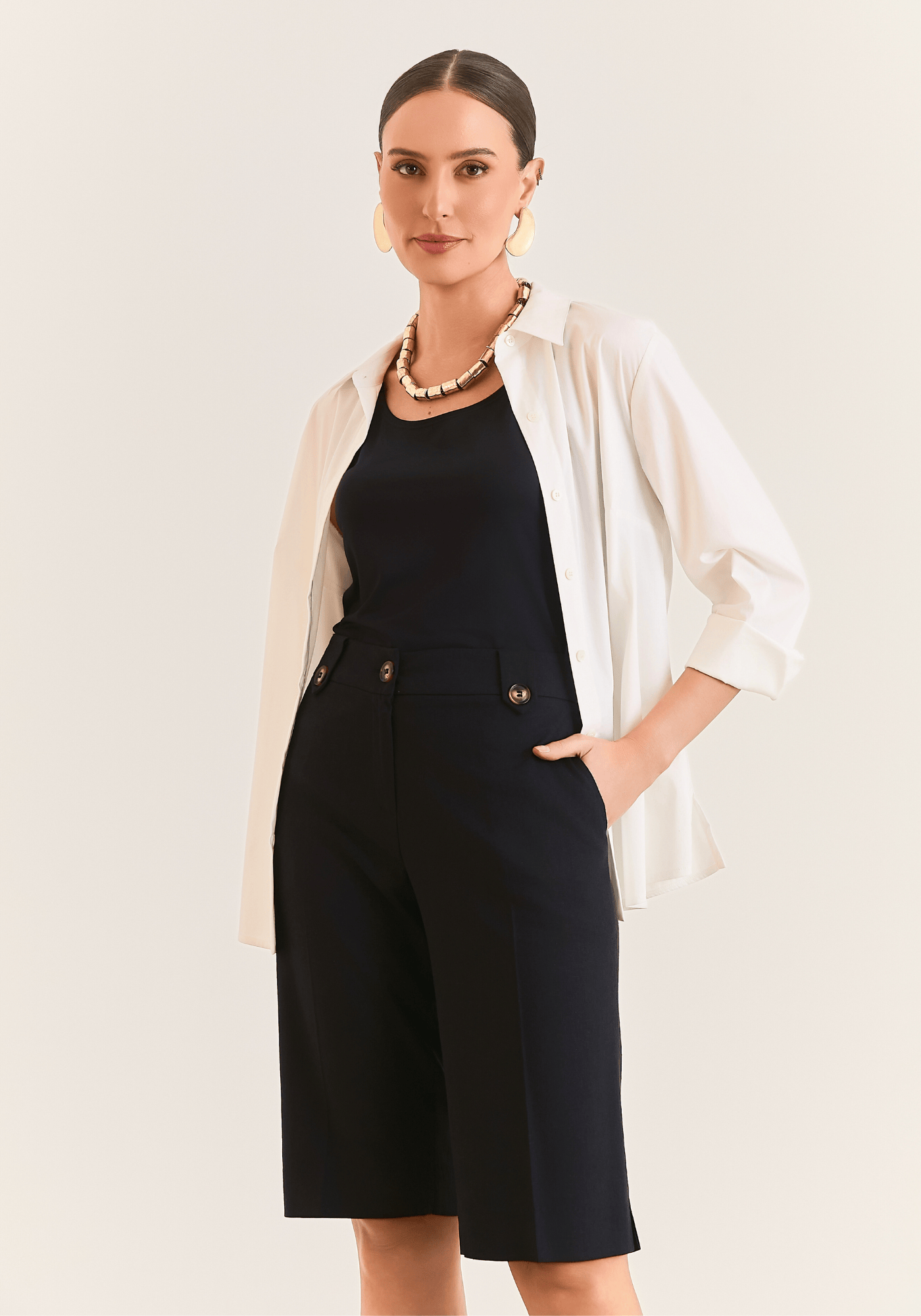 Tamanho 48: Cintura 96 cm | Quadril 116 cm | Comprimento 61 cm | Entre pernas 39 cm