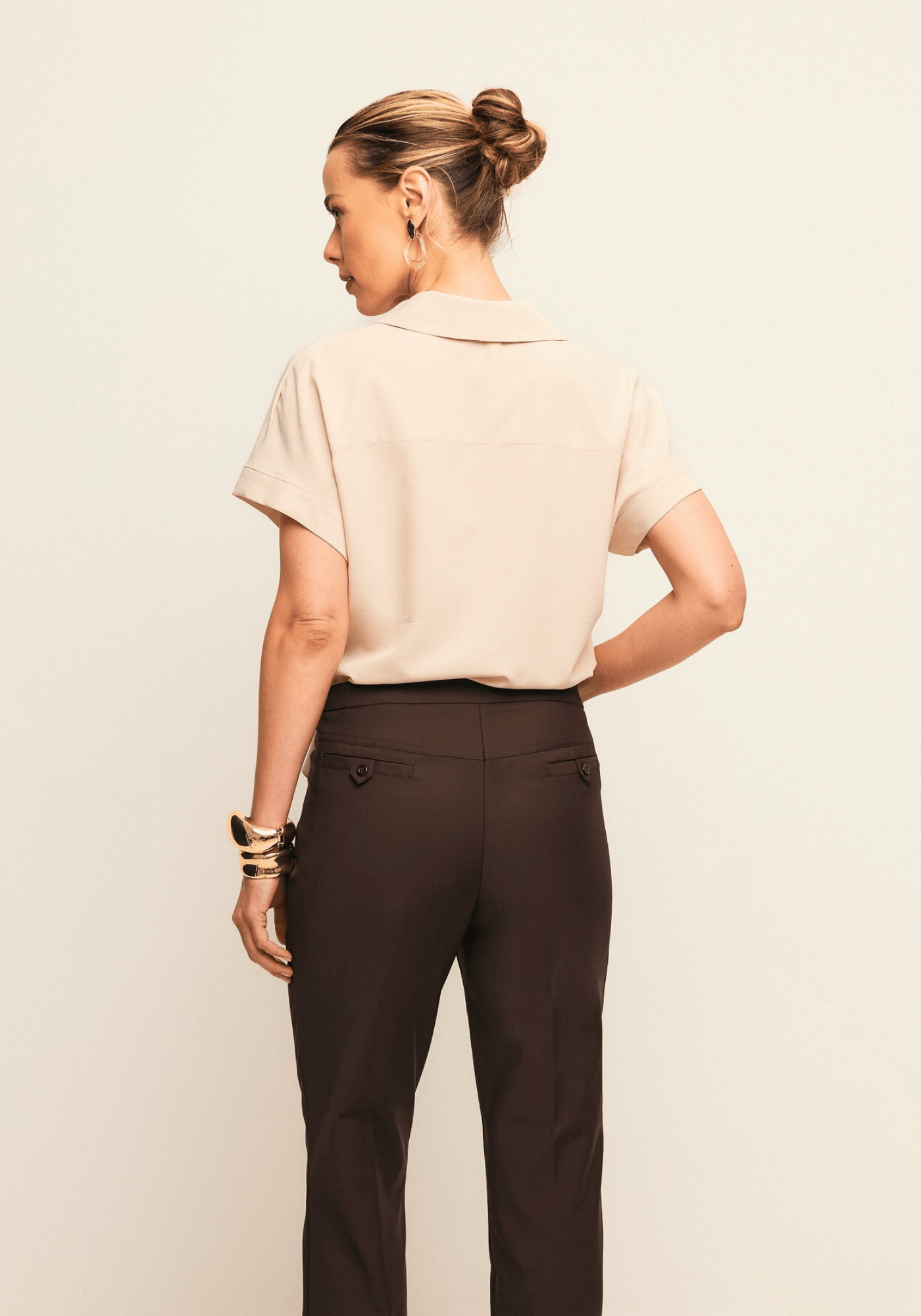 Gola colarinho adicionando um toque de modernidade ao look.
