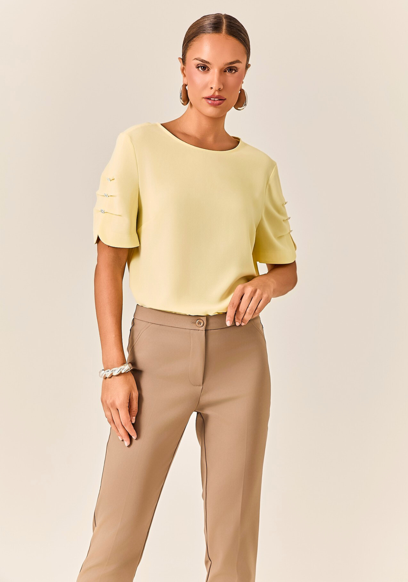Modelagem Reta Cropped: Valoriza a silhueta, oferecendo conforto e um visual elegante.