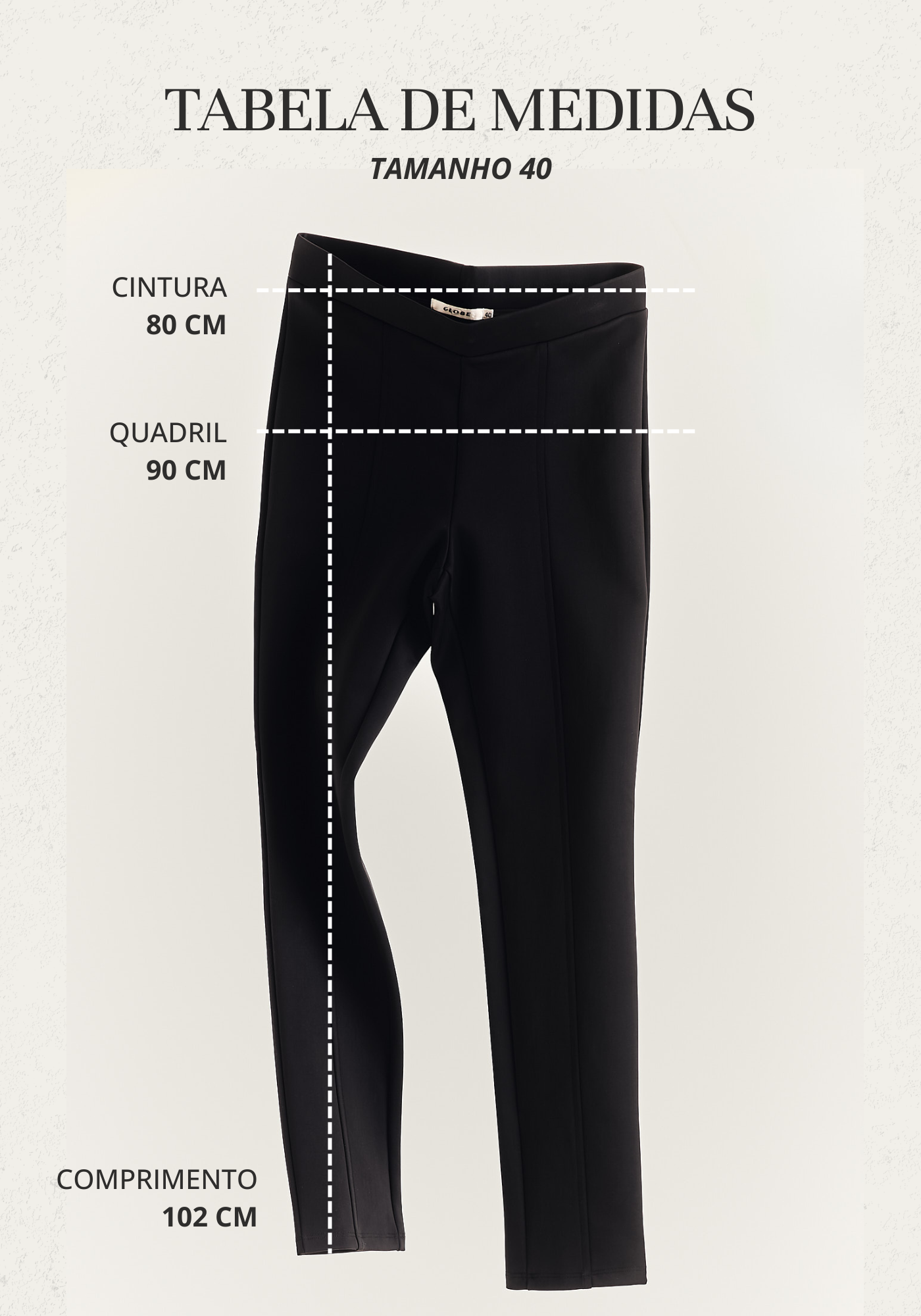 40 – Cintura 80cm | Quadril 90cm | Comprimento 101cm | Entrepernas 79cm