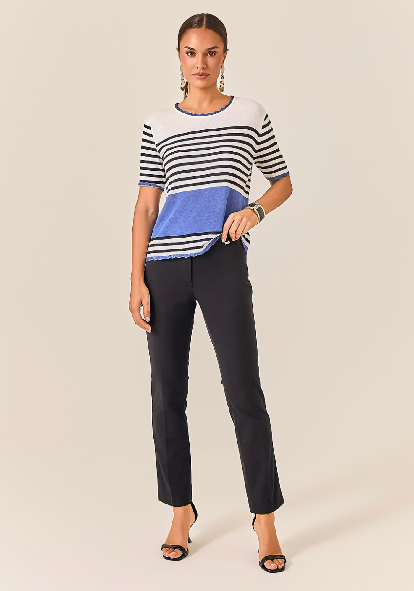 Versatilidade Atemporal: Combina facilmente com camisas de alfaiataria, blusas leves ou blazers estruturados.