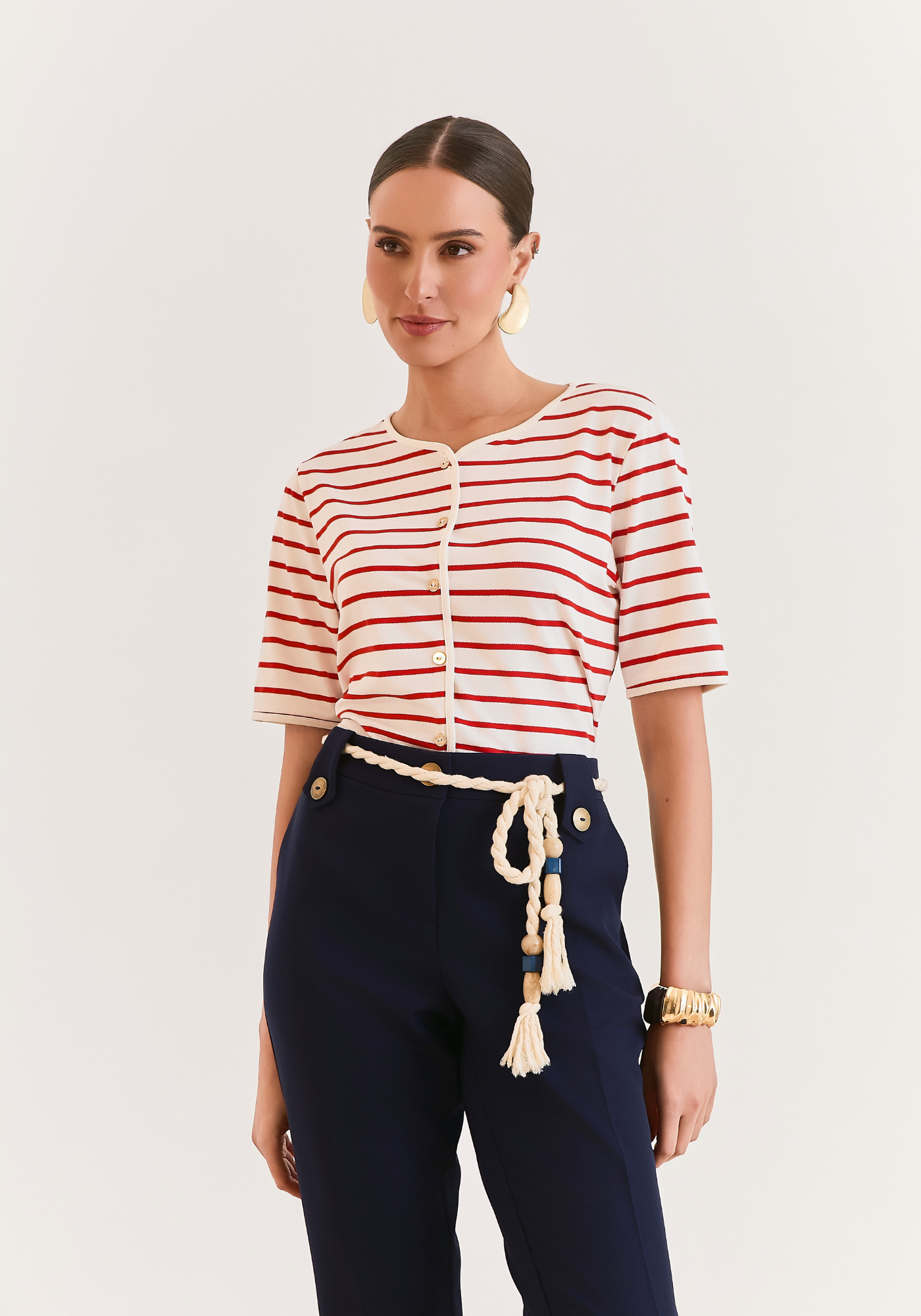 Martingale Exclusivo: Detalhe com botão de metal que eleva o design e confere sofisticação.