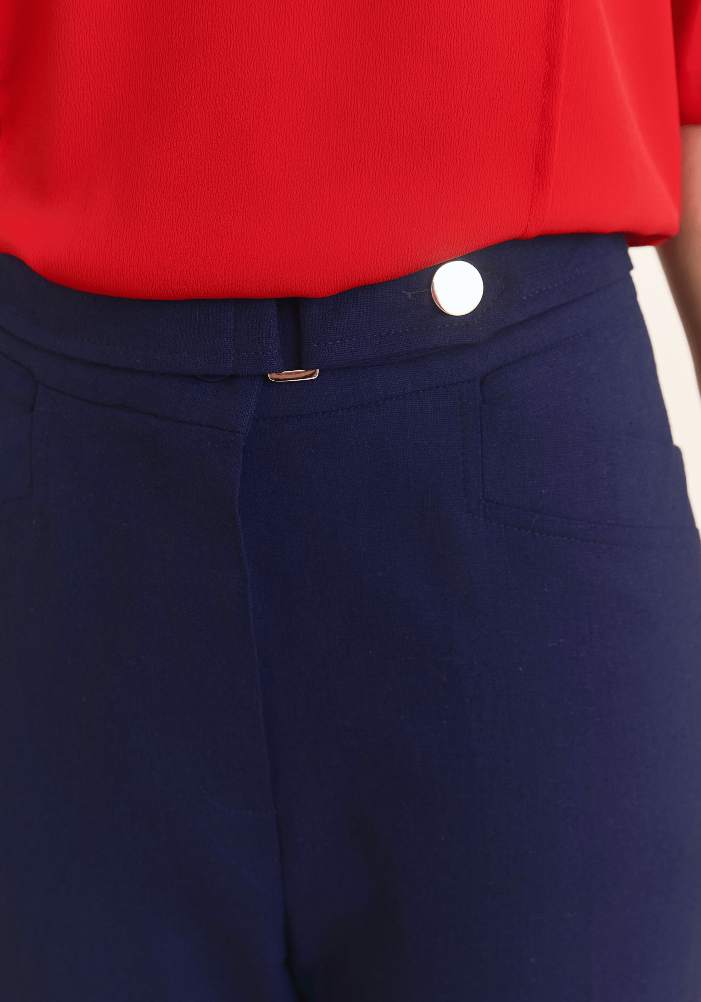 A Calça Reta com Detalhe no Cós é a combinação perfeita entre sofisticação e conforto, ideal para compor looks elegantes e versáteis. Confeccionada com um blend de tecidos nobres que mistura viscose, linho, algodão e elastano, essa peça oferece um toque suave, respirabilidade e elasticidade, garantindo liberdade de movimento com um ajuste impecável. O detalhe refinado no cós eleva o design da calça, proporcionando um toque extra de elegância.