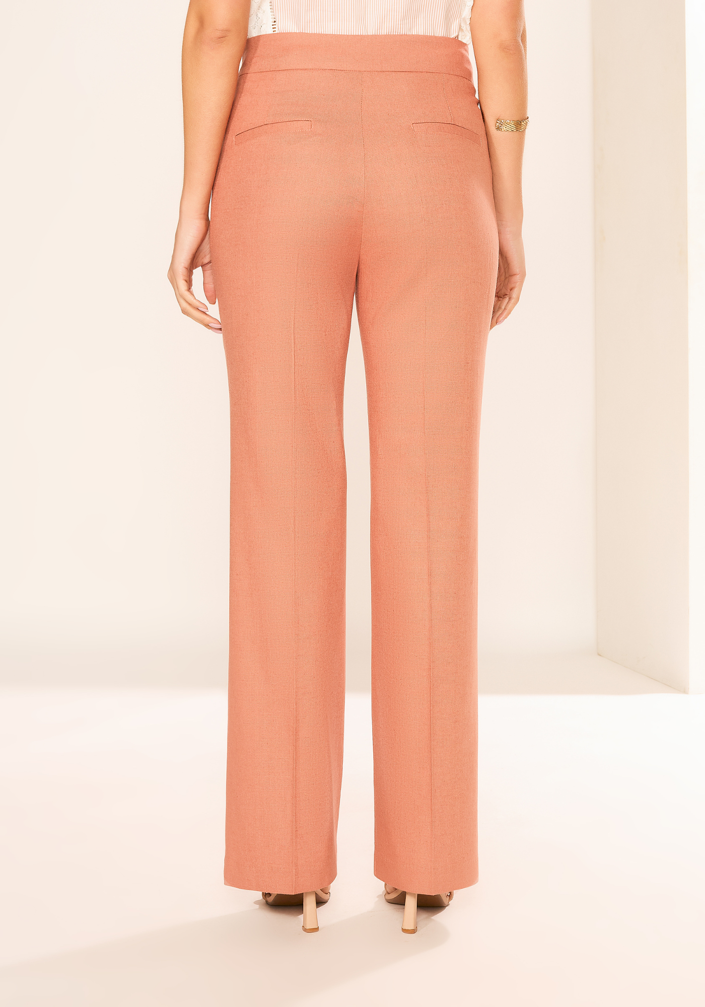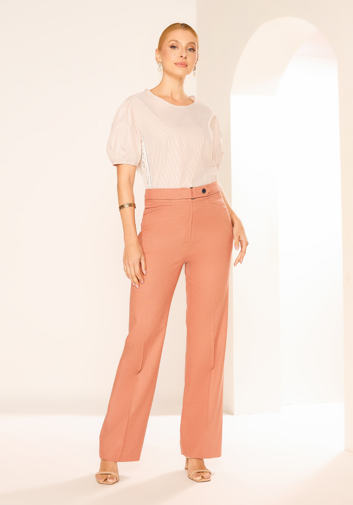 A Calça Reta com Detalhe no Cós é a combinação perfeita entre sofisticação e conforto, ideal para compor looks elegantes e versáteis. Confeccionada com um blend de tecidos nobres que mistura viscose, linho, algodão e elastano, essa peça oferece um toque suave, respirabilidade e elasticidade, garantindo liberdade de movimento com um ajuste impecável. O detalhe refinado no cós eleva o design da calça, proporcionando um toque extra de elegância.<br />