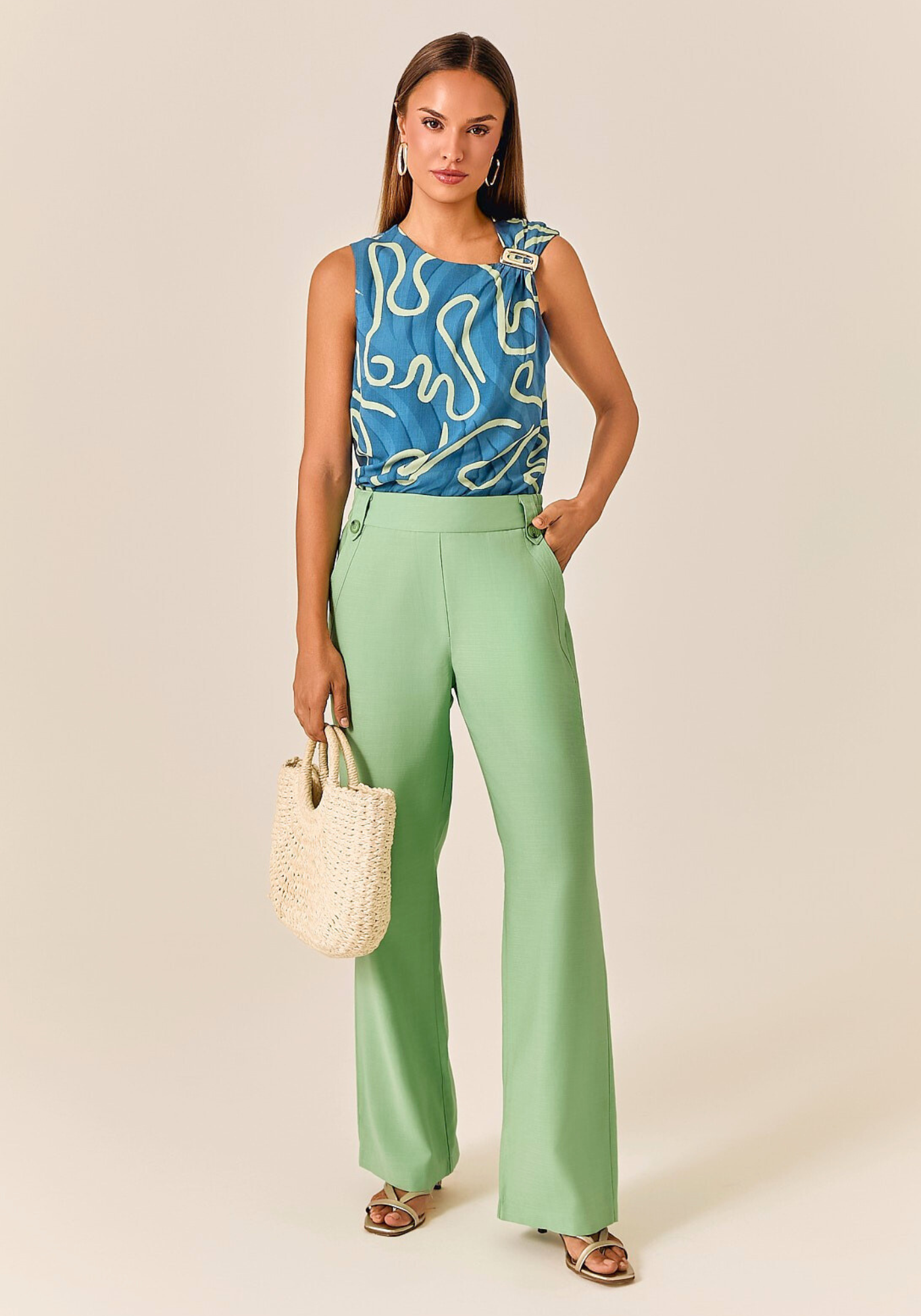 Modelagem Pantalona Moderna - Pernas amplas e retas que criam silhueta alongada e sofisticada, tendência atemporal da moda