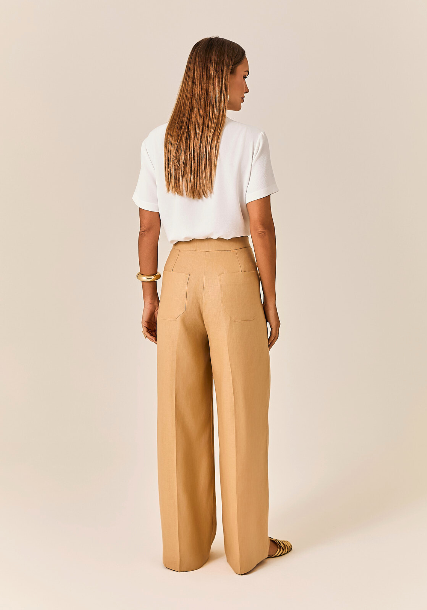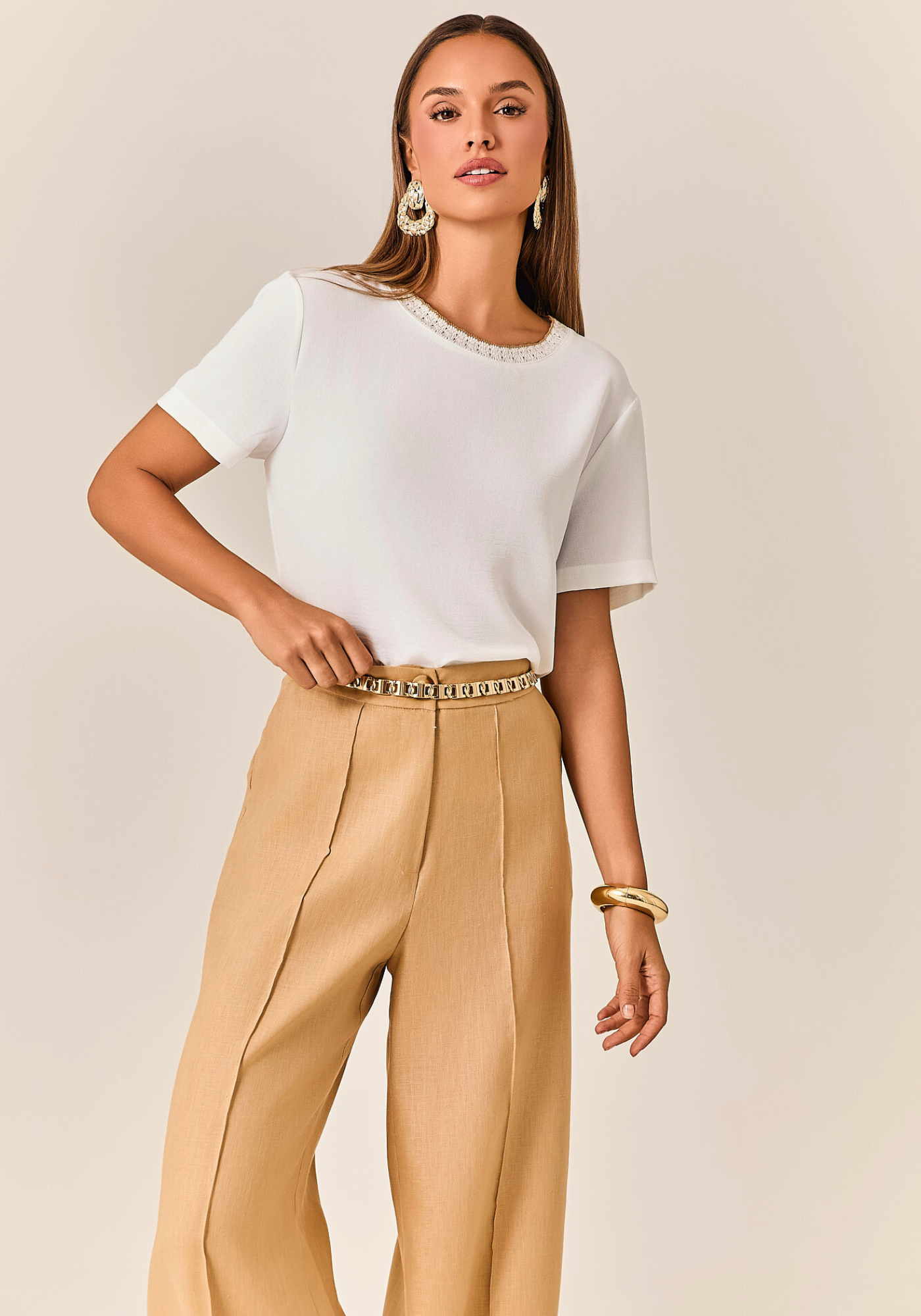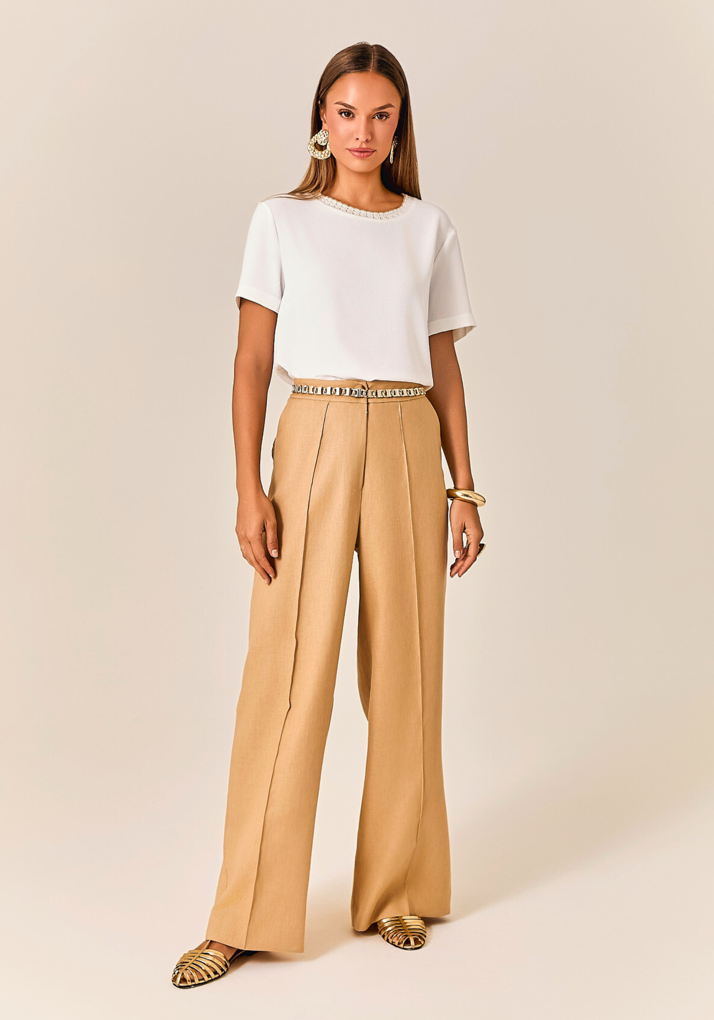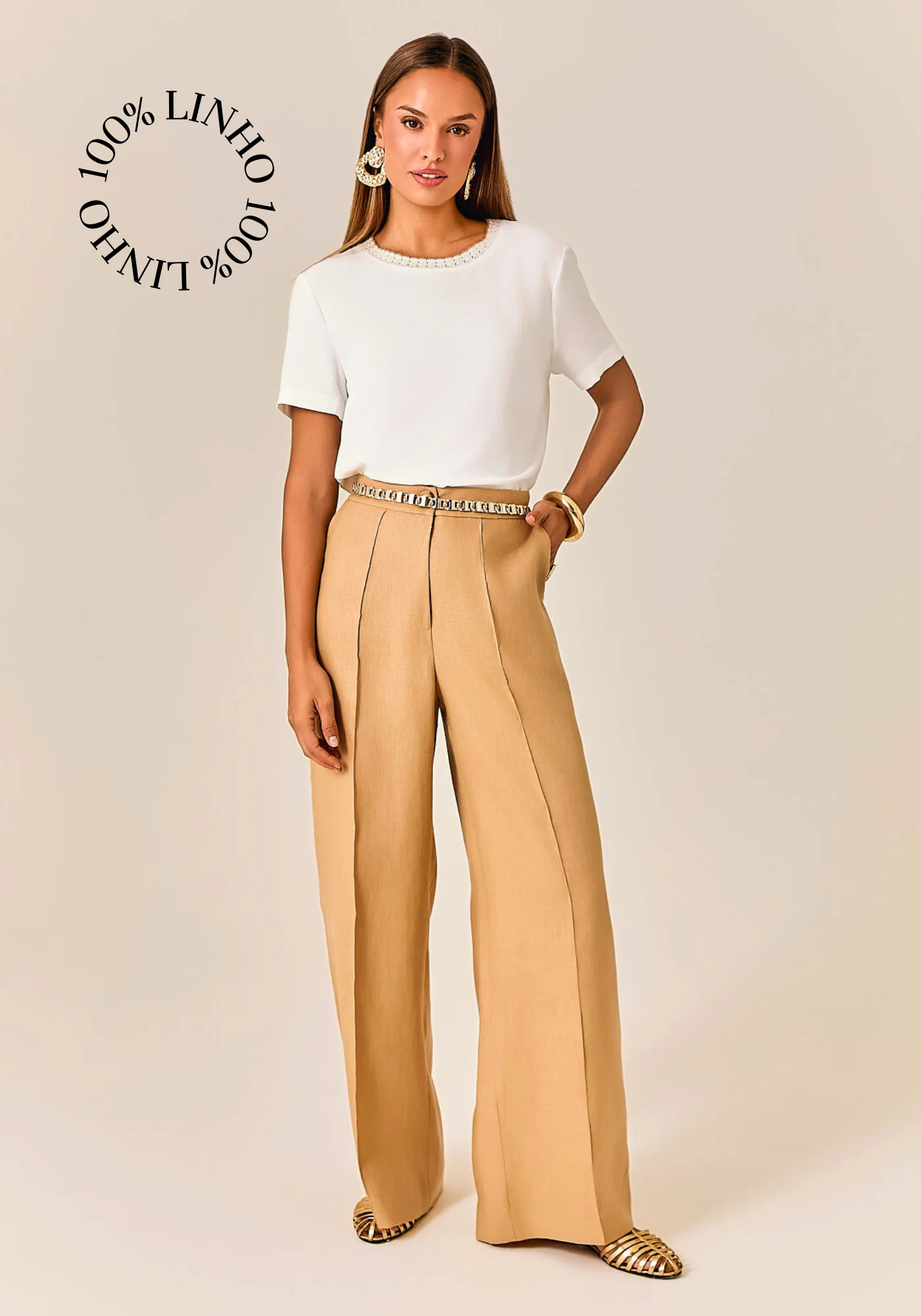 Calça Wide Leg confeccionada em linho puro 100%