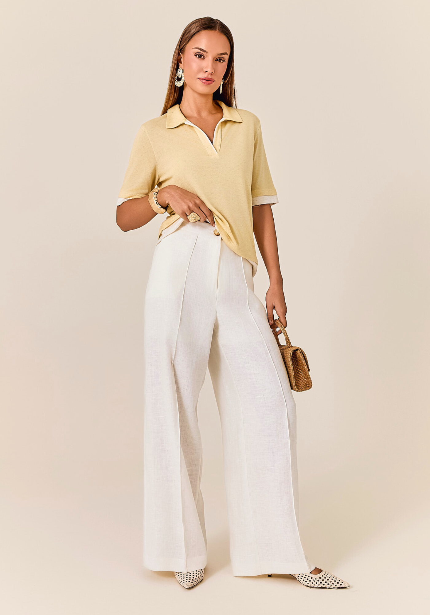 Calça Wide Leg confeccionada em linho puro 100%