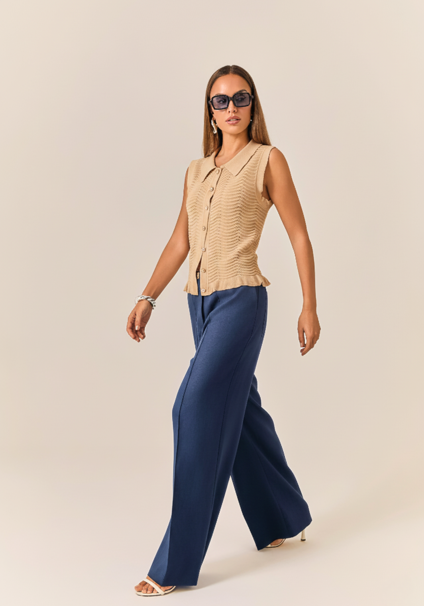 Botões frontais e acabamento delicado nas bordas