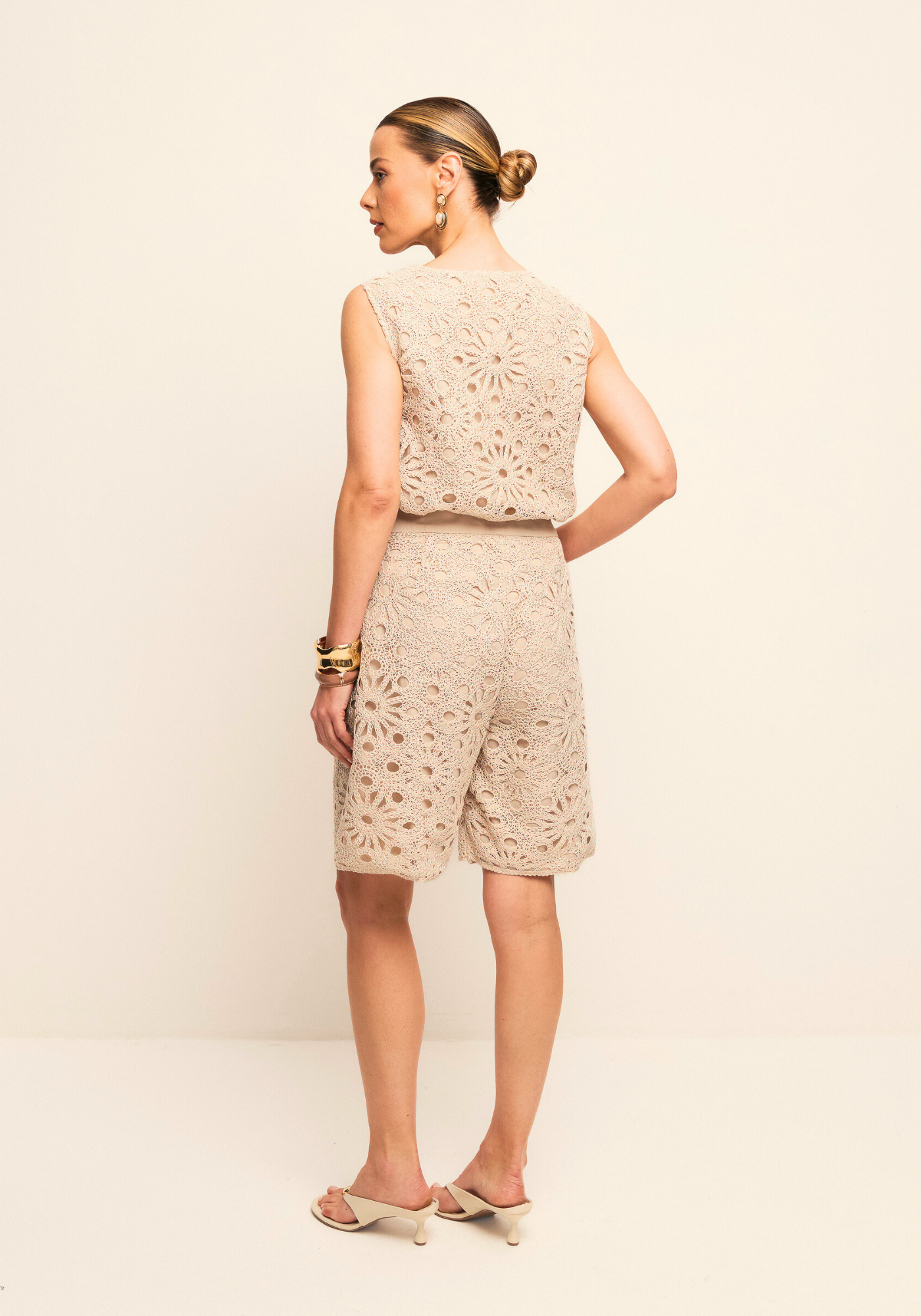 Bordado em renda, adicionando um toque de feminilidade ao look.