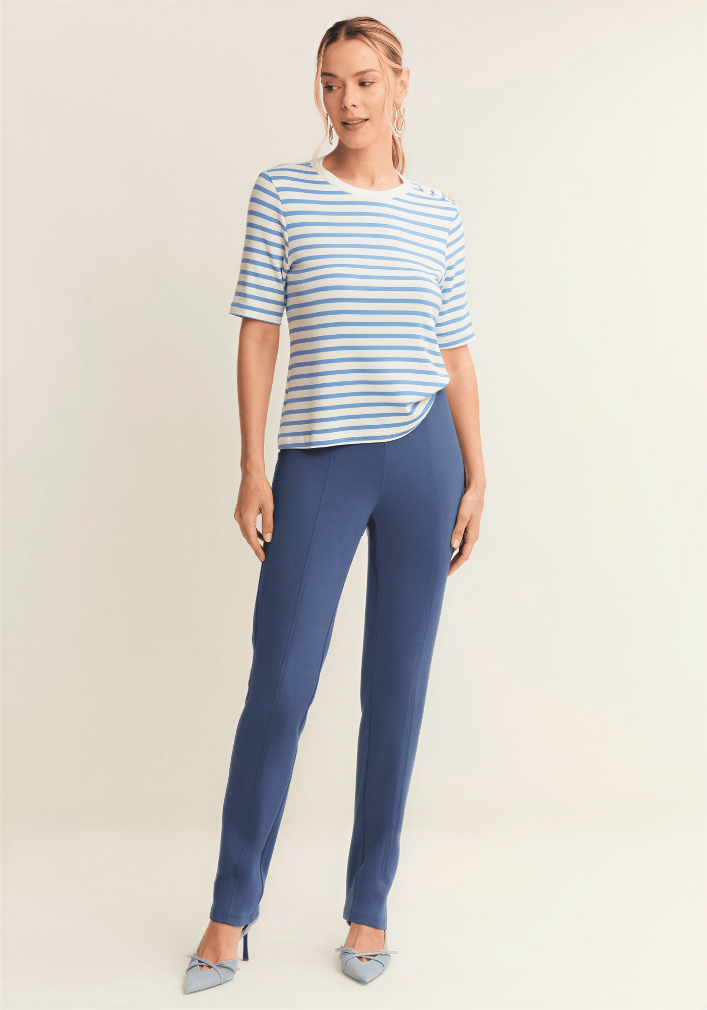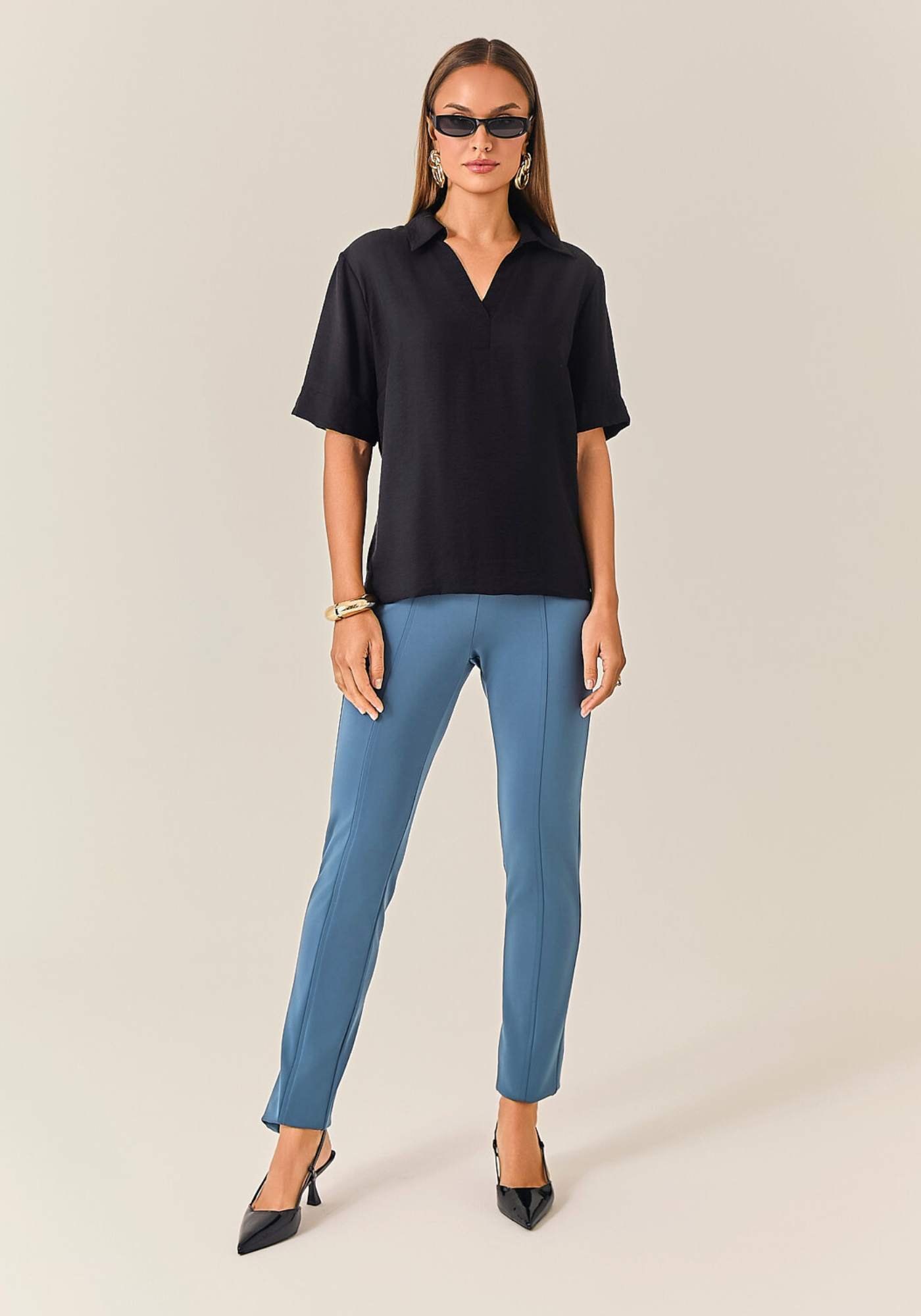 Design Sofisticado: Costura central com friso, que adiciona um detalhe elegante à peça básica.