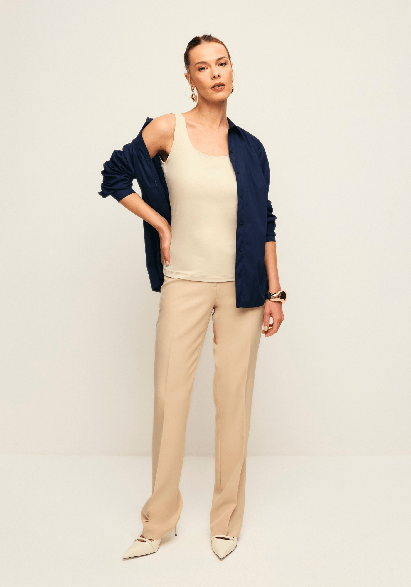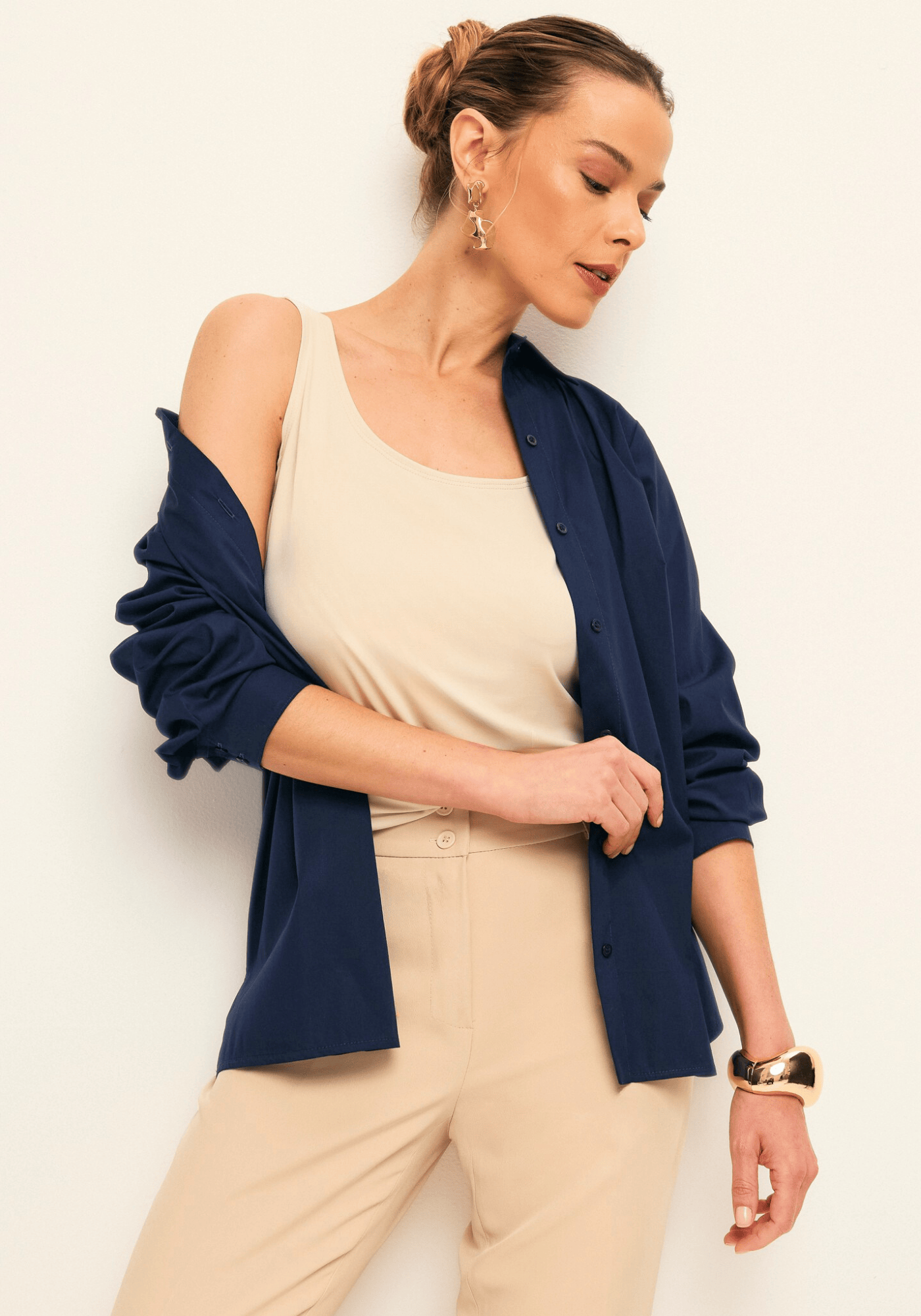 Regata de malha básica, justa ao corpo, confortável, perfeita para usar como segunda pele ou com blazers e camisas.