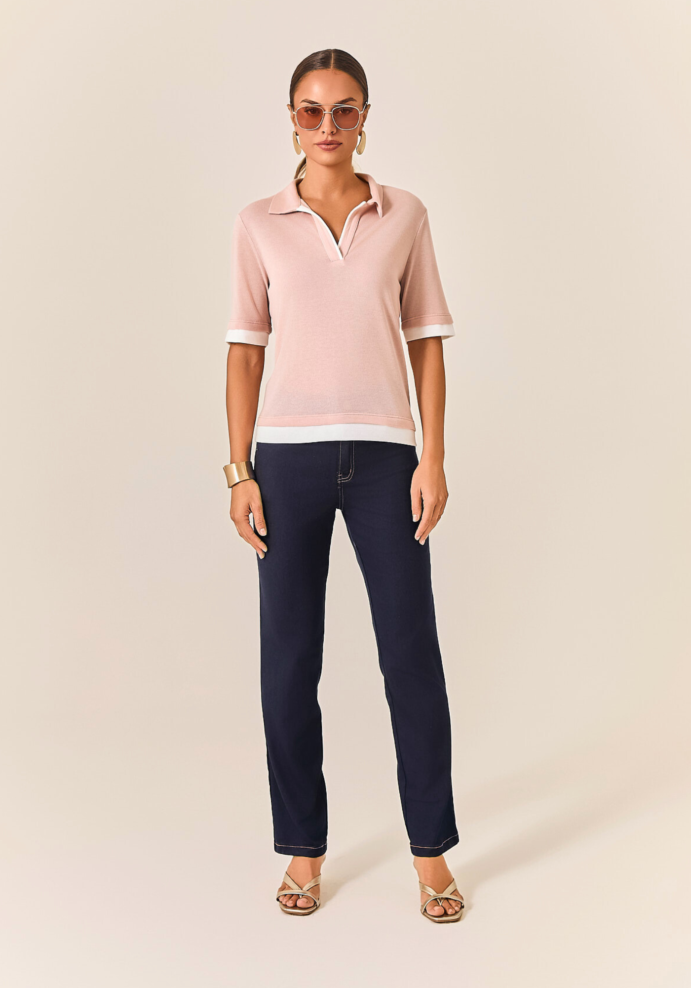 Manga curta com gola clássica