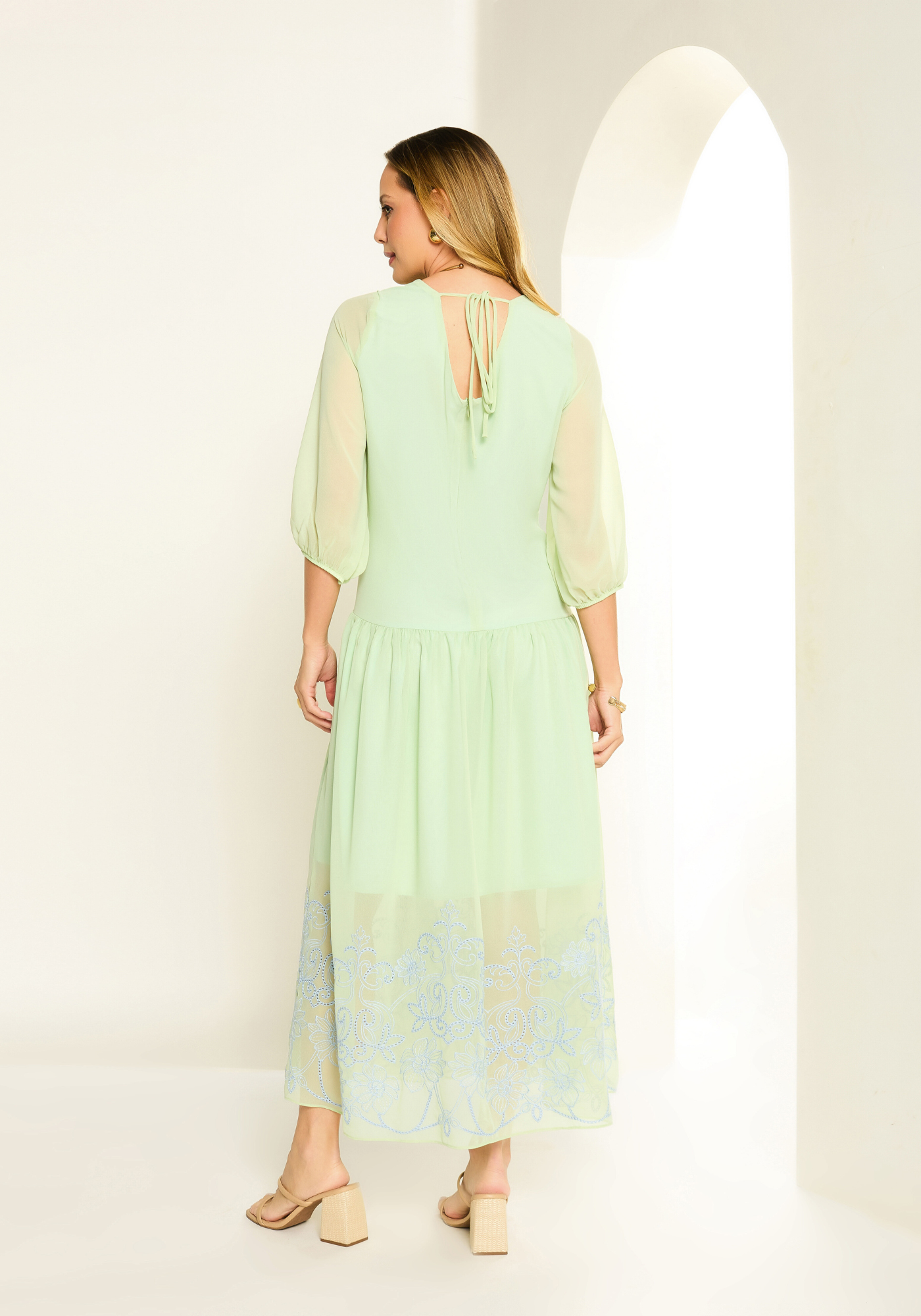 Bordado floral na barra - Detalhes delicados em renda que conferem sofisticação e charme
